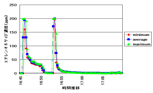図17.エアレーション完了後の被滅菌物取り出し時のエチレンオキサイド濃度変化 |